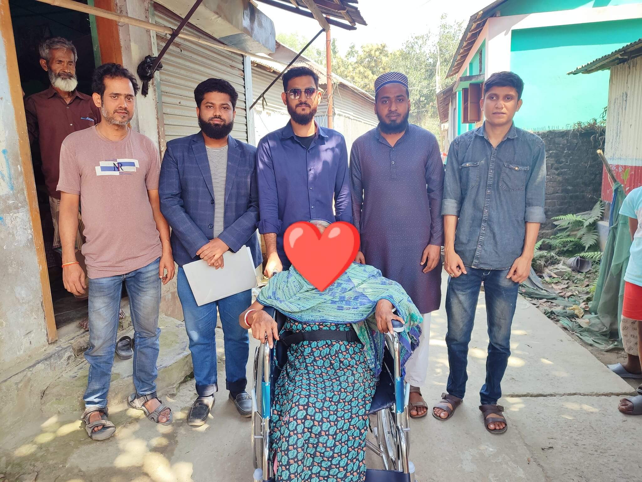 সমাজ কল্যাণ সংসদ উনার জন্য একটি হুইলচেয়ার ব্যবস্থা করতে সক্ষম হয়।